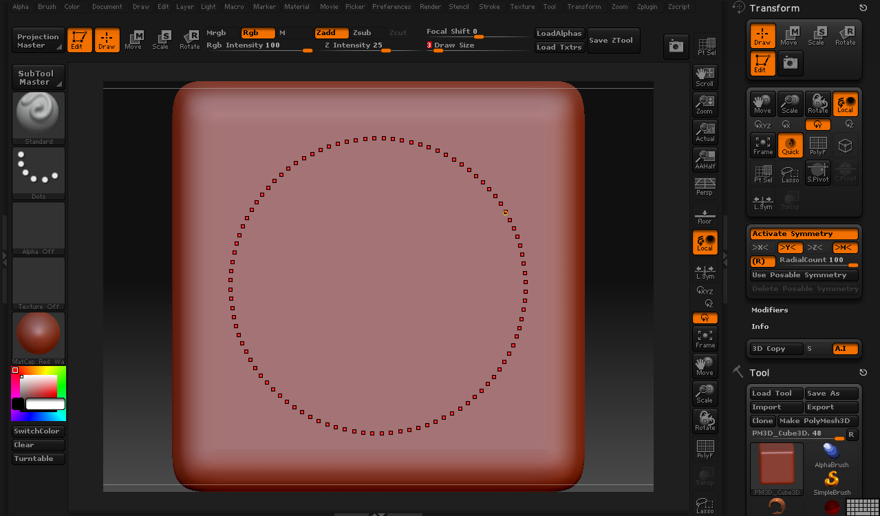 I needed a hexagonal part with a round hole in the middle. Â This would seem to be a challenge for ZBrush requiring an outside modeler. Â However, it is actually pretty easy in ZB if you know primitives and deformers.