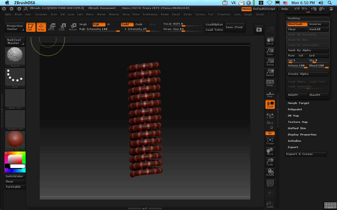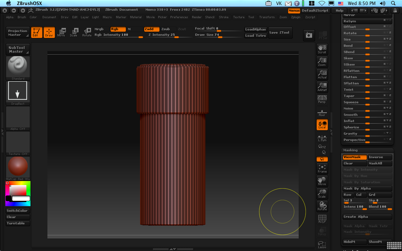 Now for some stripes. Â On the masking subpallet, Mask All, and then set sel and skip to 3 and 8. Â Hit Col for a nice striped mask: